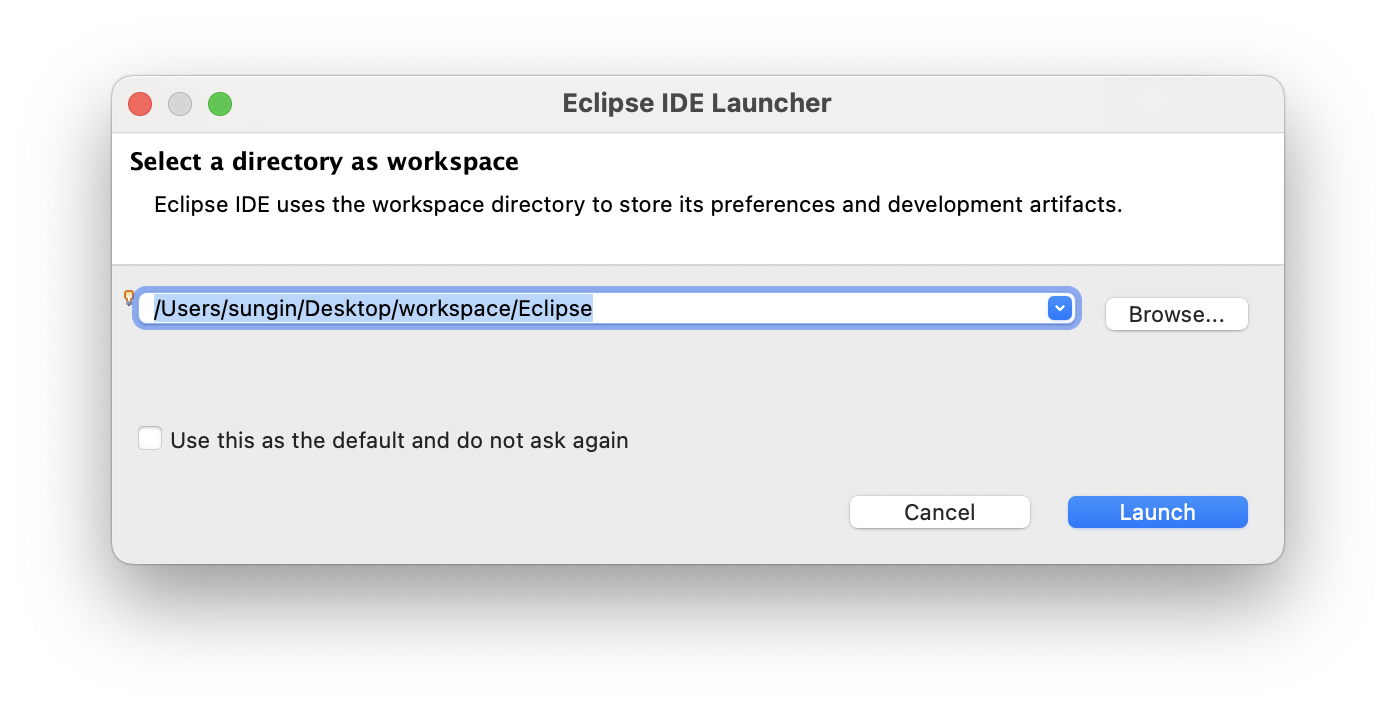 자신이 워크스페이스로 사용할 폴더를 선택한 후, 진행하도록 하자.