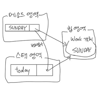 따라서 Week.SUNDAY와 today는 같은 Week 객체를 참조하게 된다.
