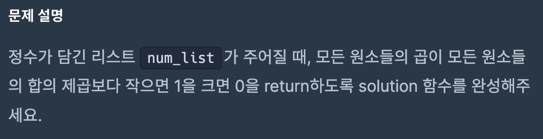 이후 합을 제곱하고 삼항연산자에 넣어 return 하였다.