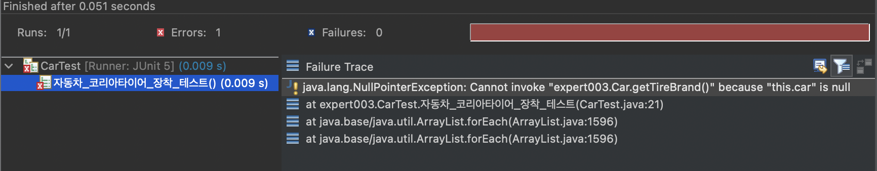 assertEquals("장착한 타이어 : 코리아 타이어", car.getTireBrand());